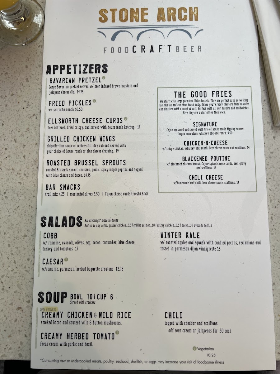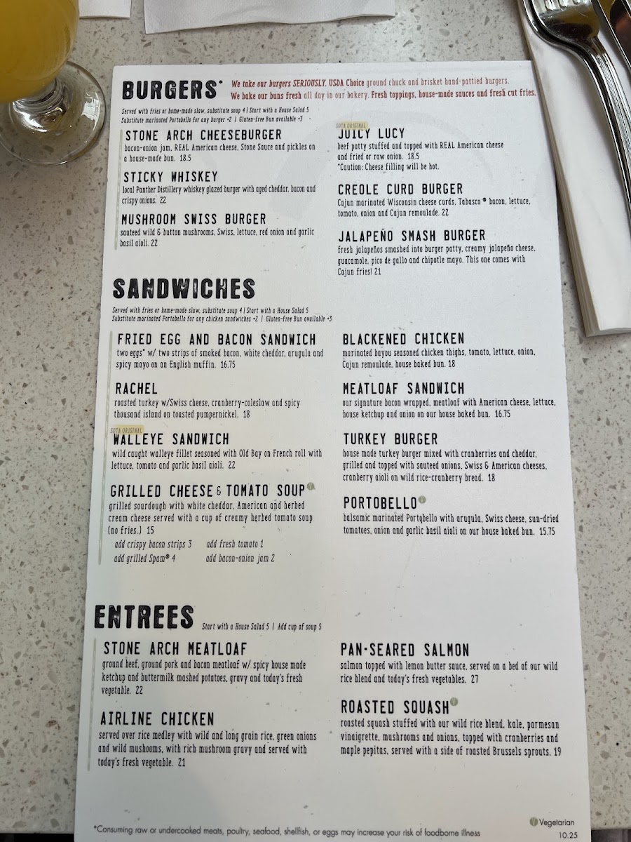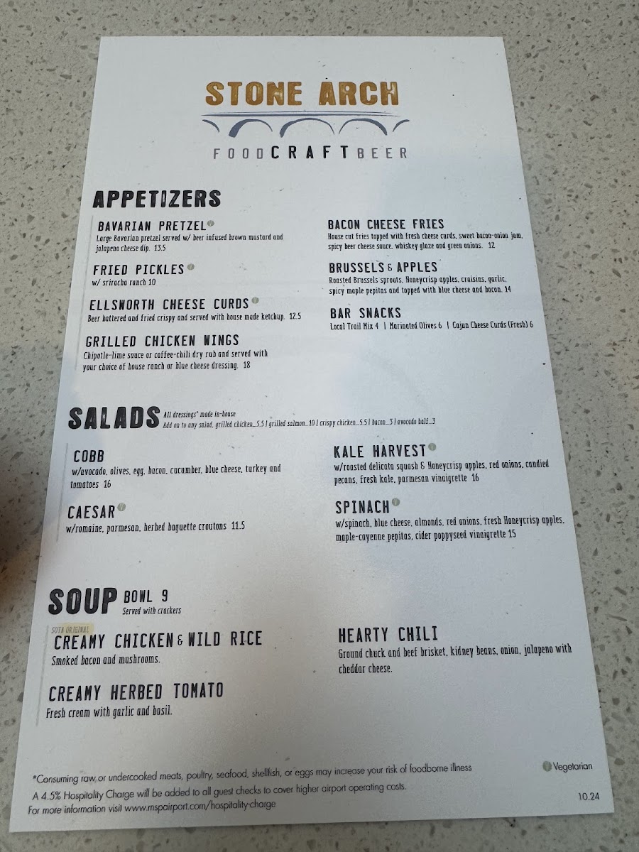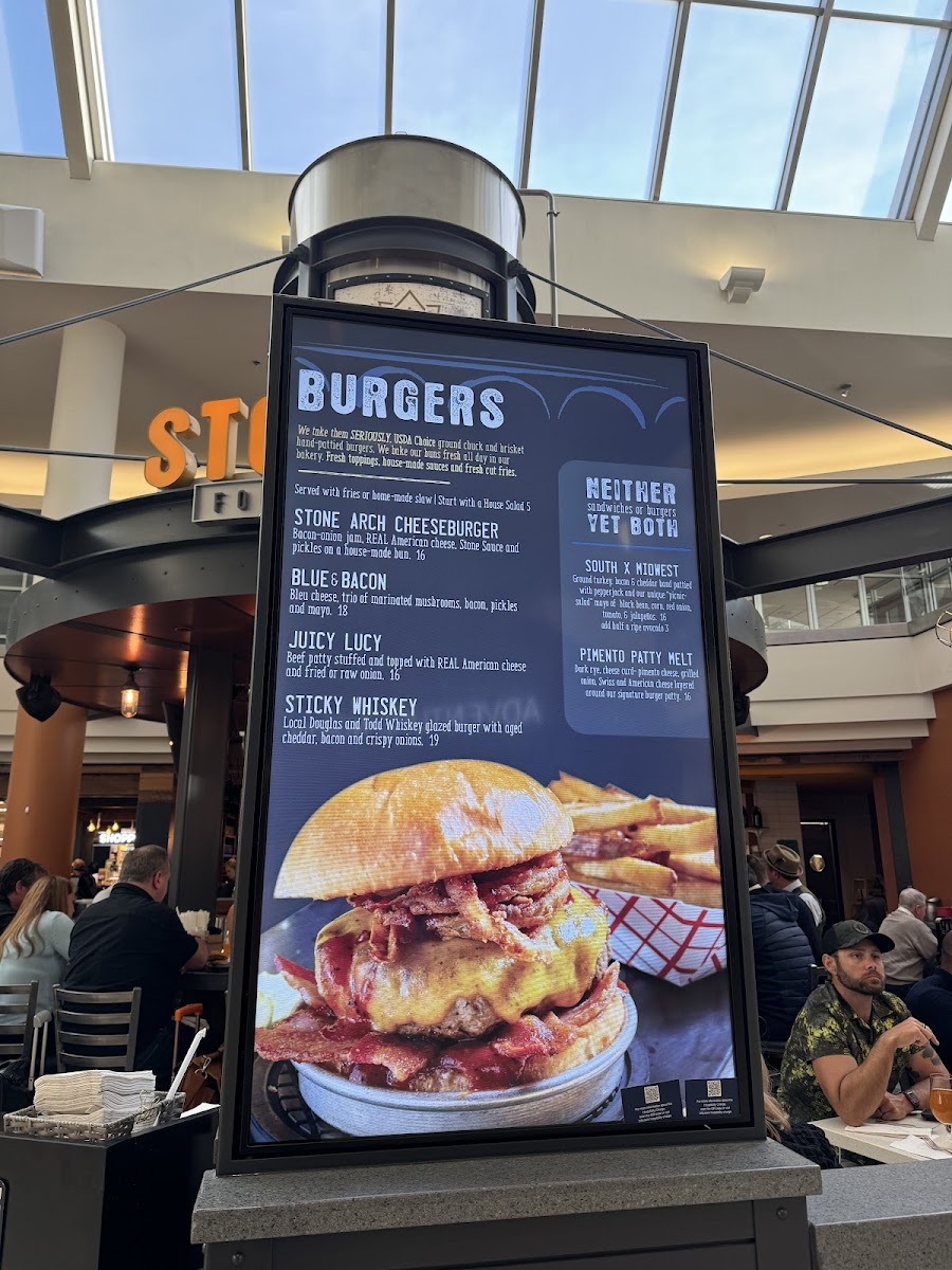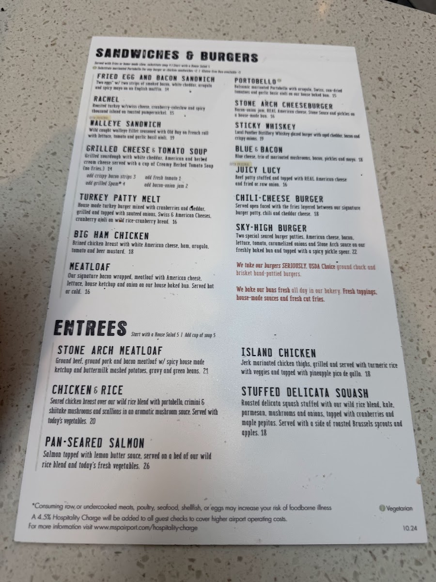 Stone Arch, nestled inside MSP Airport at 4300 Glumack Dr, is a standout American gastropub and cocktail bar that redefines airport dining. Its menu shines with hearty classics and local favorites, from the perfectly grilled Walleye Sandwich to the comforting, home-style meatloaf served with fresh green beans and real mashed potatoes. The spotlight on quality ingredients and thoughtful preparation transforms simple dishes into memorable experiences.